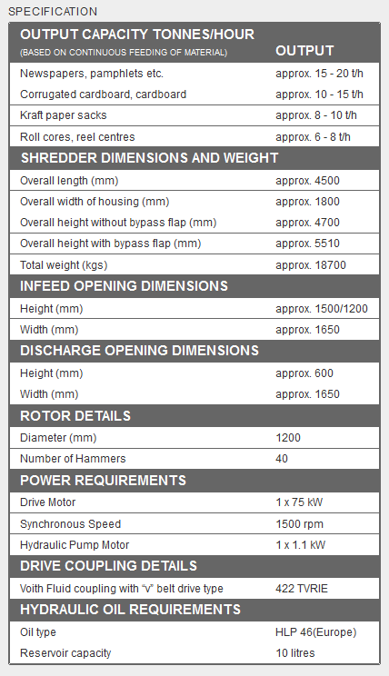 Lyndex PCZ paper shredders are designed not only to loosen up and tear open the input materials but also to shred them. All advantages are retained, i.e. low energy costs, minimum dust emission, and minimum destruction of fibre structure. The material is only shredded to the extent to achieve bales of stable shape and high density. As with the PC paper conditioner, the PCZ increases the infeed density and thus the press output when used on bulky, voluminous material.