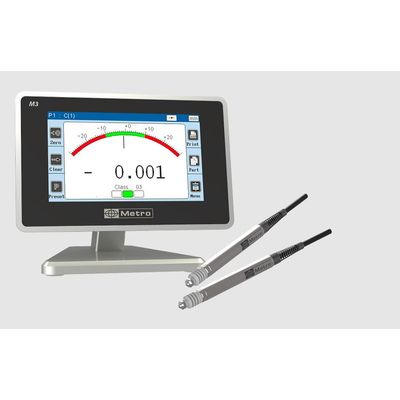 The M3 is equipped with a 4.3`` touch screen allowing a very clear visualization of the dimensions as well as a simplified configuration of the device. The M3 has different communication means (USB or RS232) allowing to transmit measurements to a PC and/or to control the display remotely. Its case, machined in a solid aluminum block, offers to the M3 an unequalled robustness, even used in severe industrial environment (cutting oil etc...)