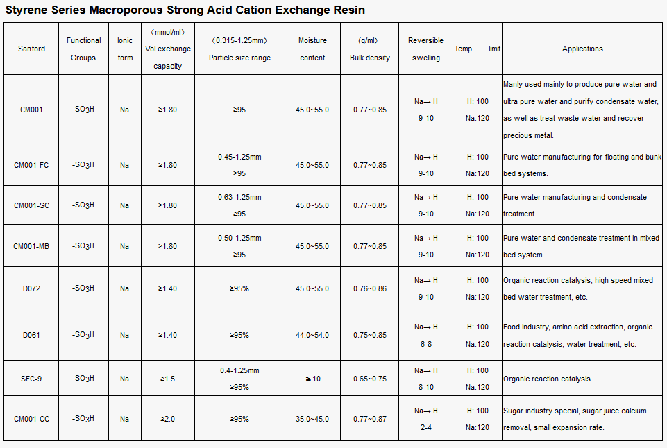 Sanford - Macroporous Strong Acid Cation Exchange Resin (SAC)