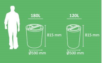 Circular multiwaste bin with lock. Available in 120 liters or 180 liters for 2, 3 and 4 types of waste. Collection system: smart inner-ring or metal inner-liner with elastic band bag holder. Separated inner compartments for each type of waste. The waste is hidden in the version with soft closing cover. Made of galvanized steel or stainless steel.