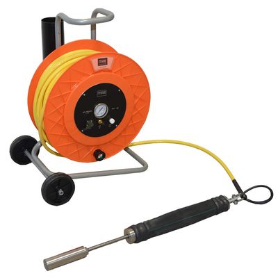- Trigger connector, pressure gauge, pressurization valve and depressurization sensor on front panel of the cable reel