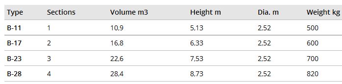 Outdoor silo type B in Aluzink: The Basic-B silo is intended for free-flowing feed. The Basic silo is equipped with a 60 degree cone as standard. This type of cone will lower the silo, which may be advantageous when you want a more discrete silo at close to the stable. The Basic silo is equipped with a cyclone, which gives careful filling of the pelleted materials, and also provides good ventilation as well. This is a prerequisite for avoiding condensation in the silo.