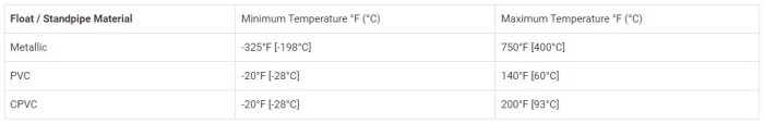 Float Material: Minimum Specific Gravity