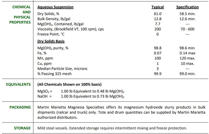 Martin Marietta CellGuard - Model OP -Magnesium Hydroxide Slurry for Pulp Bleaching