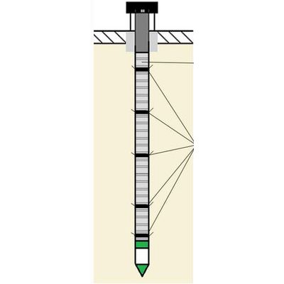 A settlement gauge is a device that measures structural displacements, axial movements, and adjustements of soils of different composition. It is used during all stages of construction of road embankements, tunnels, dams and during geotechnical intervention which might affect the adjustement of the soil.