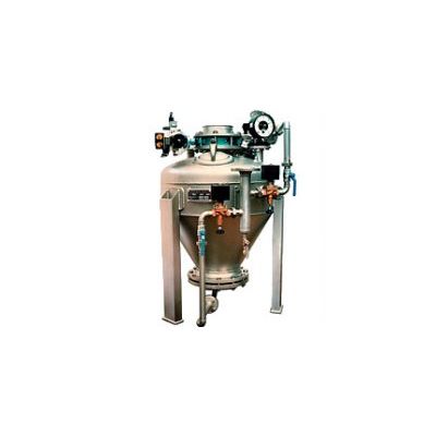 The operation of a pressure vessel is always discontinuous; therefore a buffer container is arranged above the pressure vessel for continuously occurring material. If large delivery rates are required, two pressure vessels can be operated in parallel. While one is being filled, the other is emptying. An almost continuous delivery is achieved in this way. In every case, the supplied amount of material must not be larger than the capacity of the pressure vessel. The average availability of a single pressure vessel is 50% and that of a twin pressure vessel is approx. 90%.