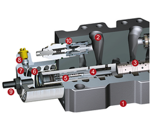 - Valve control spool: with integrated compensators and pressure copiers