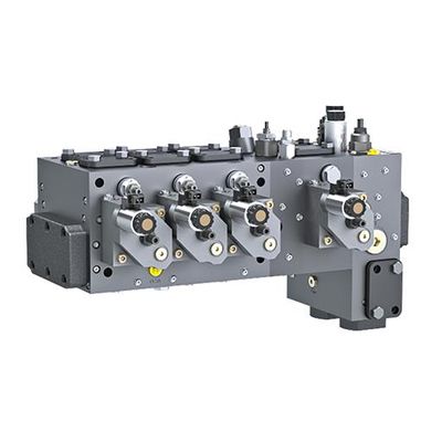 Main control valve for load sensing systems in monoblock design. Three directional control valves in a common housing form the base of the manifold valve plate in monoblock design. This results in the most compact package.