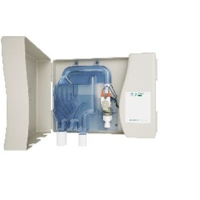 Every system needs a mains water backup to keep the appliances going. The simplest way is a float switch and solenoid valve; the float switch detects when the rainwater storage tank is empty and opens the electrically-actuated solenoid valve so that mains water flows into the bottom of the tank. When the float switch floats off the bottom of the tank it turns the solenoid valve off. The bulk of the storage tank remains empty ready to admit the water from the next rain shower. The Rain Backup in a Box® is fitted inside the building where the occupiers can see and hear it. When rainwater has run out, any mains water running from the solenoid valve into the tundish can be seen through the transparent cover and can be heard through the aperture at the side.The Rain Backup in a Box® replaces a higgle piggle of components with a single wall mounted unit, one electric plug to a wall socket, mains water input and a pipe to the underground storage tank.