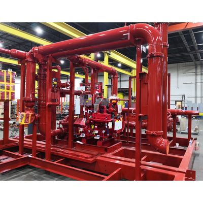 Prefabricated fire pump system designed to NFPA 20 standards with environmental enclosures available.