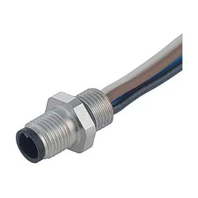 M5 Male panel mount connector, Contacts: 3, unshielded, single wires, IP67. M5, series 707, Automation Technology - Sensors and Actuators.