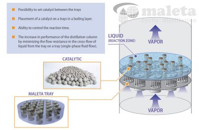 - Raising the capacity of the distillation column (no additional resistance of the catalyst).
