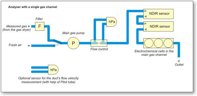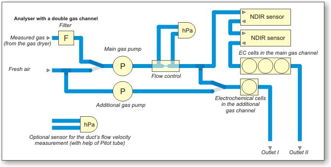 - Bio-measurement is a typical application for the double gas channel configuration - then the primary gas channel holds sensors CO2, CH4, O2, and the additional gas channel holds the H2S sensor that is recognised as a fragile one.