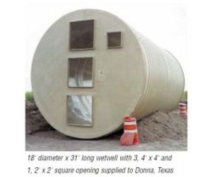 Fiberglass wetwells eliminate infiltration and exfiltration at this critical station in a sanitary sewer line. The monolithic construction of the wetwell has no sidewall joints, sections or seams to let ground water in or waste out. And because they are highly resistant to corrosion, you are assured that wetwells will provide long lasting performance.