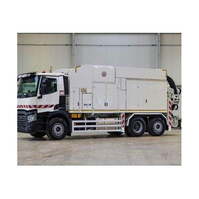 Container volume ca. 4,5 m³. Dimensions 8,9 x 2,5 x 3,7. Air compressor 4,5 m³/min, 8 bar. VENTILATOR Patented twin fan technology. Filtration system Automatic self-cleaning system. Suction hose carrier. POWER ARM Suction hose D = 250mm. Remote control SPS Radio Remote Control Chassis 3 x axle (6×4 or 6×2)