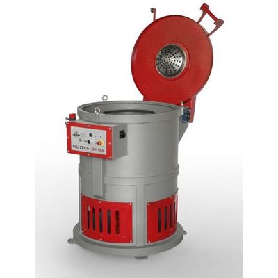 Standard NuovaSara centrifuge, very robust, with reinforced carpentry and frame, thickening side members, high thickness sheet metal, designed for long life and ease of maintenance. With electronic card controls . Two standard non-expandable versions: with or without heating. 4 capacities: 25, 50, 70, 100 kg. In painted carbon steel. Variant on request: stainless steel chamber and basket. Central motor with brake mounted on shock absorber. Removable basket and for models from 50 and up, tiltable.