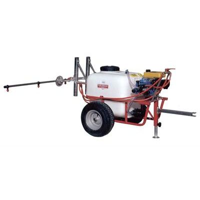 Polyethylene tank, dressed tubular frame, 20 litre/min pump, 2 HP two-stroke engine or 1.2 HP electric motor, eradicating bar with 3 mt. spraying range, large wheels for grass or particular ground, 20-25 bar operating pressure. Available in 100-200-300-400 litre version.