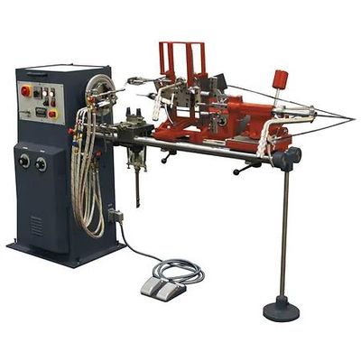 Machine for production of standard ground joints, ball joints, stop cock barrels, glass threads and flanges, forming of outer joints at flasks, according to machine type suitable for the forming of tube ends made of borosilicate glass up to 120 mm diameter.