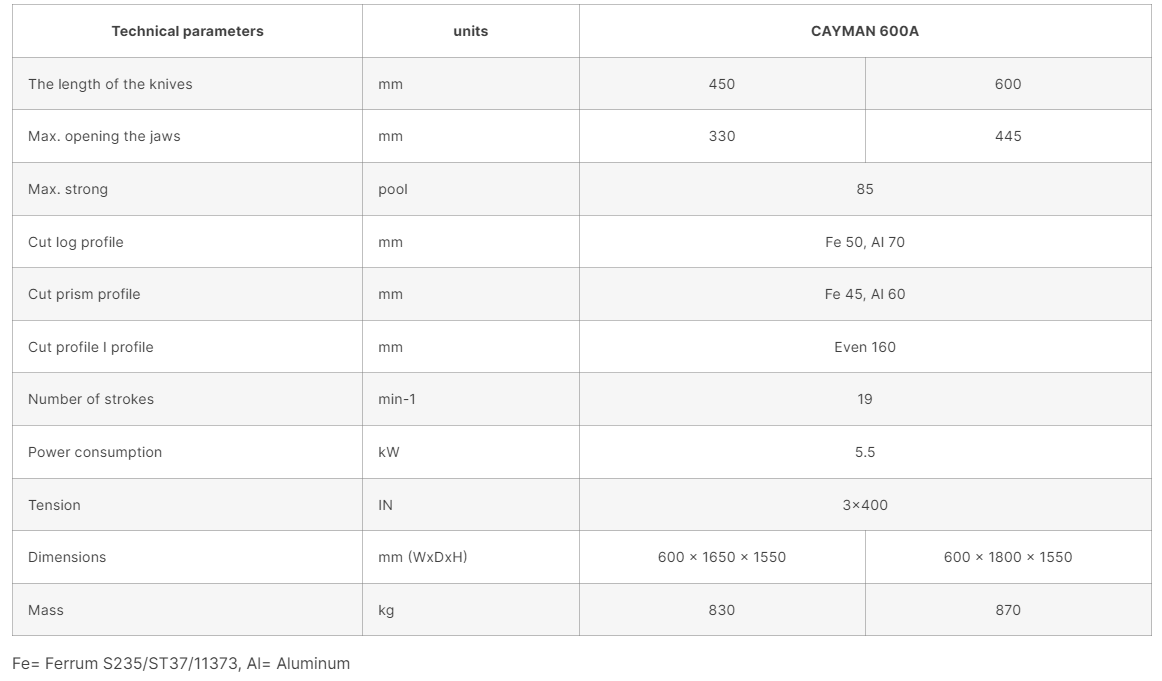 Suitable for regular work. It cuts steel profiles without any problems, even profiles up to 160 mm in size. It is a very good helper for processing ferrous and non-ferrous metals. This size is very suitable for operations dealing with the disposal of car wrecks. The machine can also be used to cut solar panels intended for disposal.