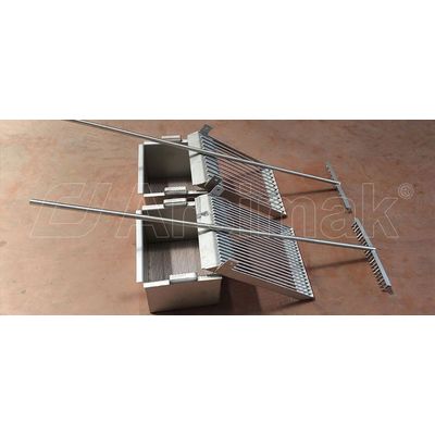 Manual screen is used for manual cleaning and is ideal for the coarse filtration at the inlet of waste water treatment plants or outlet of food industry. It consists of a stainless steel frame fixed to the wall with a central screenings area. The frame is installed in the channel with an inclination angle (usually 60° - 80°); wastewater passes through filtration area (bars) and screenings are captured. According to specific needs, an operator must periodically clean the deposited material using the rake.