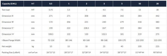 • Capacity ranging from 0.5 Ton to 10 Ton.