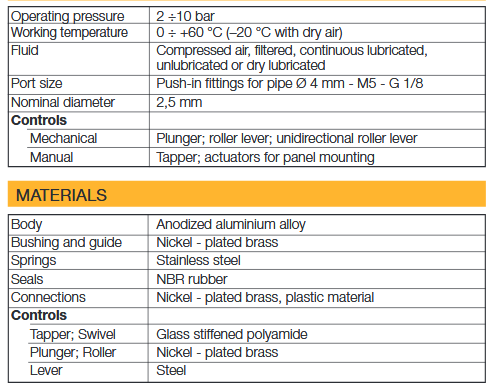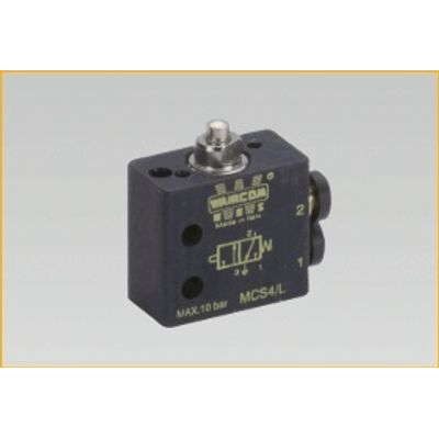 Minivalves series "M" are produced in the 2/2 and 3/2 pneumatic functions in both side and bottom ported versions, with push-in fittings on body valve for pipe Ø 4 mm or M5 threaded connections; the version G1/8" bottom ported is also available. Thanks to the suitable adapter types MCS-SA and MCS-SAD these minivalves support the "BRETER" Ø 22 mm actuators for panel mounting. The same actuators can control 1 or 2 minivalves, thus it`s possible to obtain the 3/2, 5/2, 5/3 open centre and the 5/3 pressure centre pneumatic functions.