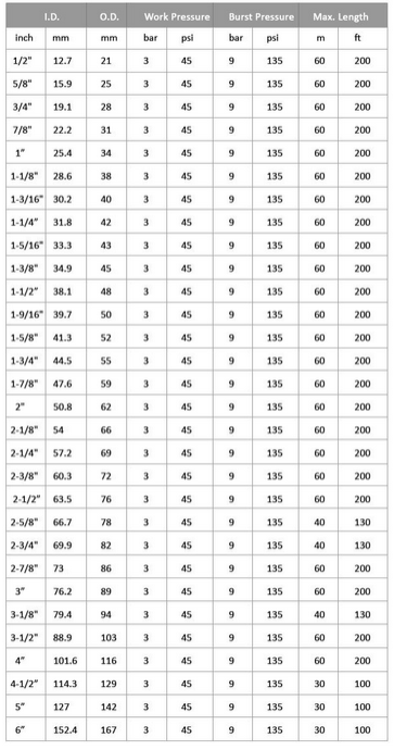 APPLICATION: Softwall hose for conveying hot water mixed with antl-freeze liquids in cooling systems. TEMPERATURE: -40*C (-40*F) lo +1(WC {*212'F). TUBE: Black, smooth. EPDM rubber. REINFORCEMENT: High strength synthetic cord. COVER: Black, smooth (wrapped finish), EPDM rubber. OPTIONAL REQUEST: Higher temperature up to 120*C (248'F).