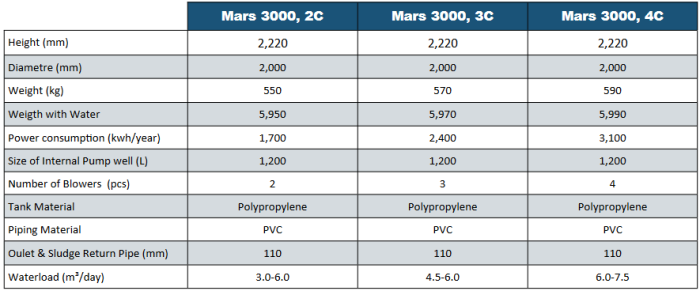 BioKube’s Mars systems are small STP plants most commonly used for single households or smaller residential groups producing up to 30 m³ wastewater a day. The Mars 3000 system is typically in-stalled after a septic tank either in-or above ground.