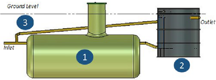 The Mars Systems is typically installed in ground after a septic tank. The septic tank should be supplied locally from one of many standard suppliers. Alternatively it can be casted on site in concrete.
