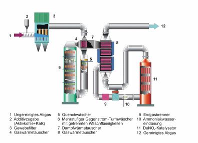 During combustion, pollutants are formed or, if they are contained in the waste, are released and pass into the flue gases. These pollutants must be removed before the flue gas can safely be allowed to enter the atmosphere. A flue gas cleaning system is therefore an integral part of every modern waste-to-energy plant.