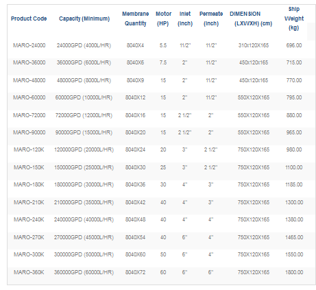The MARO Series RO’s are complete, pre-engineered proven designs that produce consistent high quality water in flow rates up to 360000 GPD. The systems feature simple user-friendly controls, rugged construction, easy access for maintenance and installation.