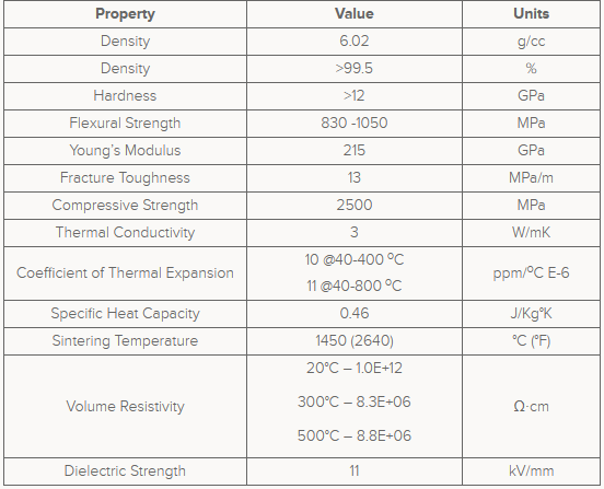 - Sintering Shrinkage: 14.5% Linear, Isotropic