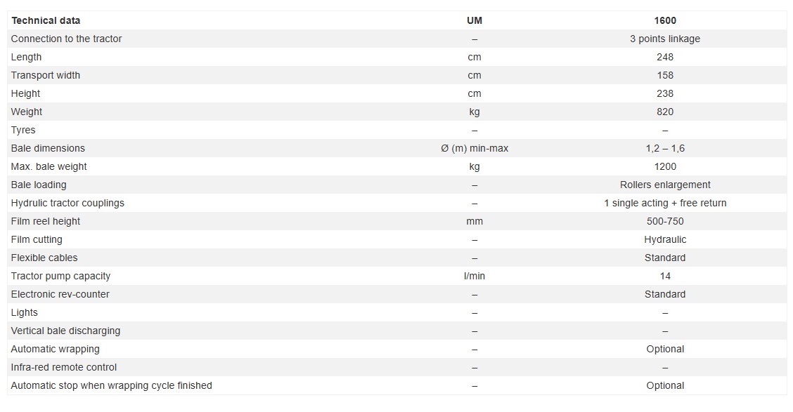 Strong, particularly suitable for small spaces and on sloping field. 3 point hitch version for front and rear linkage. Handy and safe, it works at few cm from the ground. Particularly suitable for small or uncomfortable spaces. Good results also in steep slope grounds. It could wrap bales from 120 to 160 cm diameter and till 1200 kg weight. Constant synchronization between the bale and satellite film stretcher rotation. Film overlapping is uniform at any speed. Regulation of film height (750 or 500) is made by the replacing of the transmission pinion. The model “1600B” is equipped with hydraulic brakes, which help to avoid uncontrolled satellite film stretcher rotation in hilly areas.