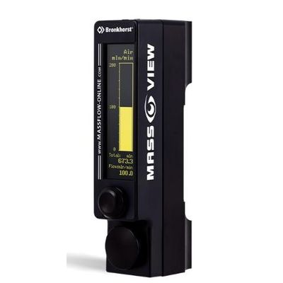 Mass Flow Meter for gases with integrated display: Direct thermal mass flow measurement; High accuracy; 10 pre-installed gases; Bright, graphical OLED display; Digital or analog output; alarm and counter functions.