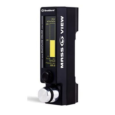 Mass Flow Regulator for gases with integrated display: Direct thermal mass flow measurement. High accuracy. 4 pre-installed gases. Bright, graphical OLED display. Digital or analog output; alarm and counter functions. High precision needle valve.