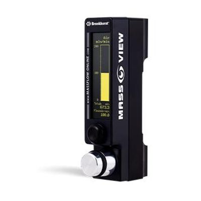 Mass Flow Regulator for gases with integrated display: Direct thermal mass flow measurement. High accuracy. Actual calibrated on Hydrogen H2. Bright, graphical OLED display. Digital or analog output; alarm and counter functions. High precision needle valve.