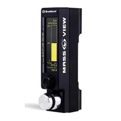 Mass Flow Regulator for gases with integrated display: Direct thermal mass flow measurement. High accuracy. Actual calibrated on Hydrogen H2. Bright, graphical OLED display. Digital or analog output; alarm and counter functions. High precision needle valve.