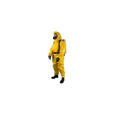 The Chem 300 is a chemically resistant one-piece work splash suit and is designed to protect the user against chemical emergencies where gas-tight protection is not considered necessary. The suit is made as one piece with integrated head section which has a frequency welded soft neoprene closure in order to clamp the mask liquid-tight. The breathing appartatus equipment are worn outside the suit. We can make a cover for the breating apparatus if you like. Additional protection to the knees and elbows is accomplished by using a double layer of material. The suit is made in a universal version. The suit can be equipped with a connection for an alarm system, light and follow line.