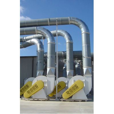 REES manufactures its own line of material handling fans for dust collection, pneumatic conveying, and fume/vapor exhaust systems. In addition, REES has access to industry-leading fan manufacturers. Industrial fans can be provided as individual pieces of equipment or incorporated into air systems up to 100,000 CFM. Fans may be ordered with or without drive components, motors, motor bases, belt and shaft guards, fan bases, special wheels, and inlet/outlet flanges.