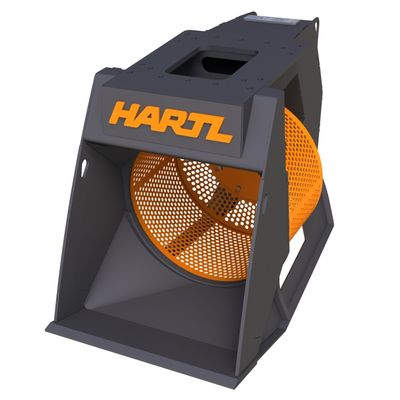 The bucket screener developed by HARTL is a quality, robust screen drum that has been ingeniously fitted to an excavator bucket.