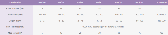 Application: T-shirt bags, shopping bags, garbage bags, mattress cover, laundry bags etc. Suitable material: HDPE / MDPE / HDPE+LLDPE. Film layer: 1 layer. Screw L/D ratio: 30:1.