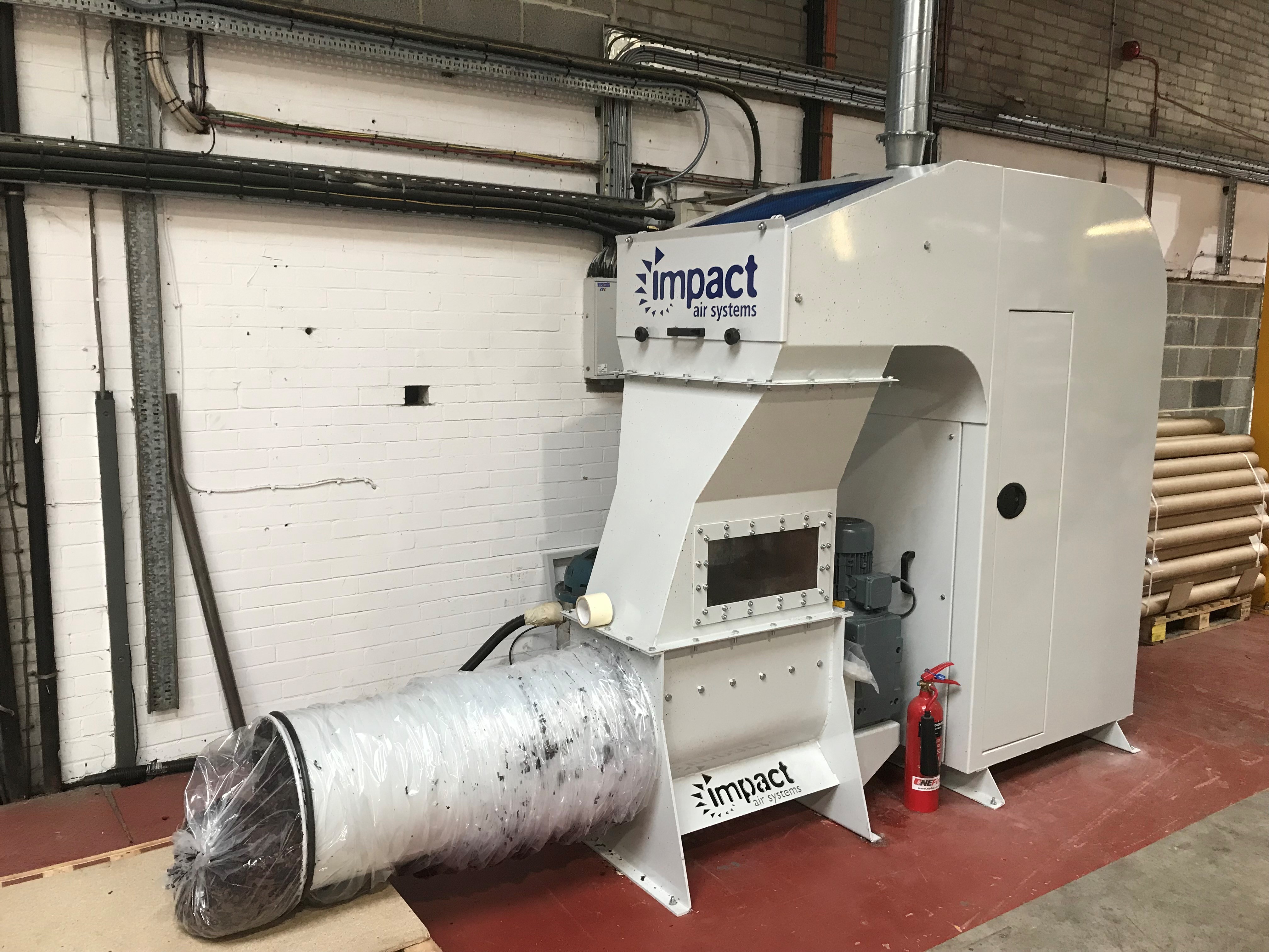 The Impact Matrix Master offers a flexible mobile solution to your waste matrix needs without having to install a central waste system.Designed to handle sticky matrix / lattice waste and edge trims from the label production process, this versatile mobile unit incorporates design cues from our tried and tested central matrix extraction systems. Neatly packaged inside an acoustic enclosure, the precision model 78 series trim cutter, waste fan, material separator and cartridge filter form the heart of the system. The unit can be positioned alongside the press and receive waste matrix directly into a collection hood, connected via a range of plasma ‘non stick coated’ galvanised ductwork to the inlet of the Matrix master.