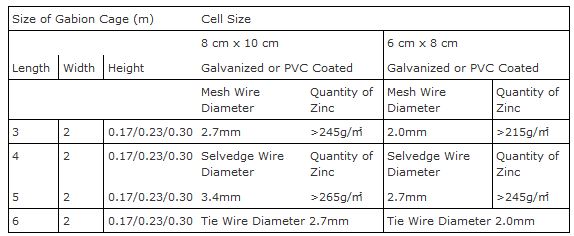 Gabion mattresses features: