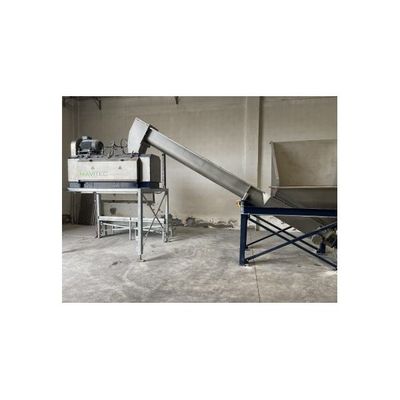 The waste product is fed into the machine with a screw conveyor. When entering the machine the rotating axle with paddles will smash the material. As the machine does not shred the material, the size of the packaging will remain the same. Due to the smashing action the organic fraction is forced to pass through the interchangeable screens (6 mm to 50 mm). The angle of the paddles is adjustable so we can set the perfect retention time for your product. During the process it is possible to add liquids on the top of the machine, these liquids can also be waste products. The cleaned packaging material will leave the machine at the end of the process. The cleaned organic material can be pumped to the location of the customer.