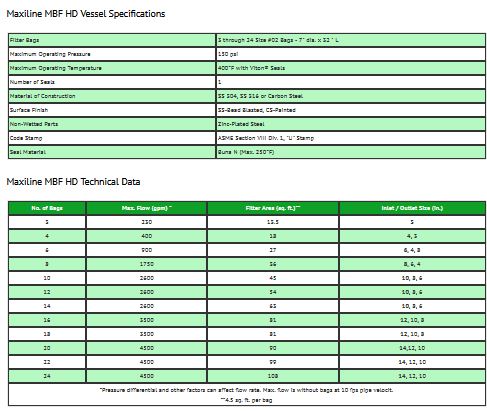 Maxiline MBF HD filter vessels hold up to 24 filter bags for applications that require high flow rates and easy bag change out. Available in seven sizes that accommodate three to twenty-four standard number 2 filter bags. Maxiline MBF HD filter vessels can handle up to 4500 GPM and are guaranteed to have no external leakage.
