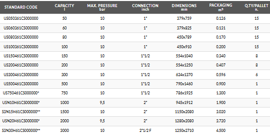 Vertical multifunction water tanks. Replaceable membrane. Available with galvanised or painted flange. Red color (blue colour available on demand). Pre-charge pressure 2 bar.