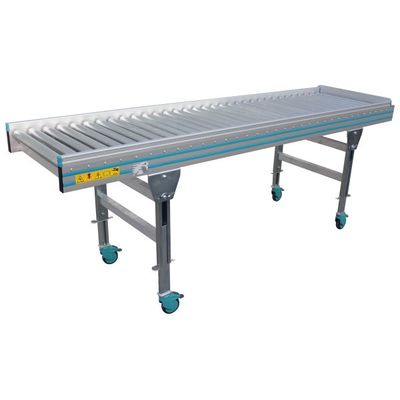 Anodized ALU profile structure (thickness 15 Microns) Alloy 6060. Standard configuration with h 40 or 80 mm side panels. 20 / 30 / 50 / 76 / 100 / 113 mm diameter galvanized steel rollers, mounted at variable pitch depending in the required use. Mechanical stop at end of travel to stop the boxes.