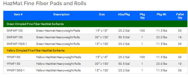 MBT fine fiber meltblown polypropylene hazmat sorbents can safely absorb most hazardous chemicals. Use these pads and rolls in chemical storage areas or in laboratories. Be sure to keep proper handling apparel and approved disposal containers in close proximity.
