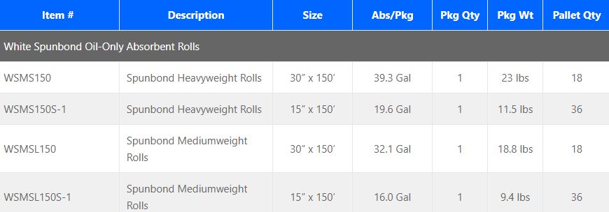MBT - Model WSMS -Spunbond Oil Only Absorbents