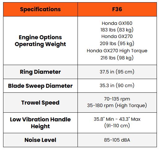 MBW - Model F36 -3-Foot Walk-Behind Trowels